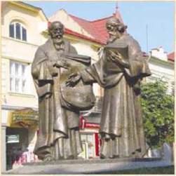 У 863 році до столиці Візантії Константинополя прибули посланці із Великоморавського князівства (територія сучасних Чехії та Словаччини). Моравський князь Ростислав звернувся до візантійського імператора із проханням прислати місіонерів, які могли б проповідувати християнство мовою, зрозумілою для місцевого населення. Візантійський імператор Михайло III спорядив у слов’янські землі з просвітницькою місією вчених монахів Костянтина (чернече ім’я Кирило) і Мефодія. Брати народилися в грецькому місті Солуні (Салоніки), де здавна жили слов’яни. Костянтин, прозваний філософом, був одним із найосвіченіших людей свого часу, мав великий досвід місіонерської діяльності. Разом із братом він склав загальнослов’янський алфавіт і переклав слов’янською мовою основні церковні книги.