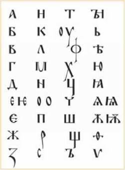 Найдавніші слов’янські пам’ятки, які дійшли до нас, написані двома різновидами алфавіту — глаголицею та кирилицею. Абетки майже цілком збігаються за складом, але значно відрізняються формою букв. Букви кирилиці прості, зручні для письма, літери глаголиці — складні для написання, занадто декоративні. Назва цієї абетки походить від слова «глаголати» — говорити. В основі глаголичних літер лежать найважливіші символи християнства — хрест, трикутник і коло. Саме цю азбуку і склав Кирило, а абетка, яка носить ім’я просвітителя, була розроблена його учнями. Кирилиця створена на основі грецького алфавіту, пристосованого до особливостей слов’янських мов.